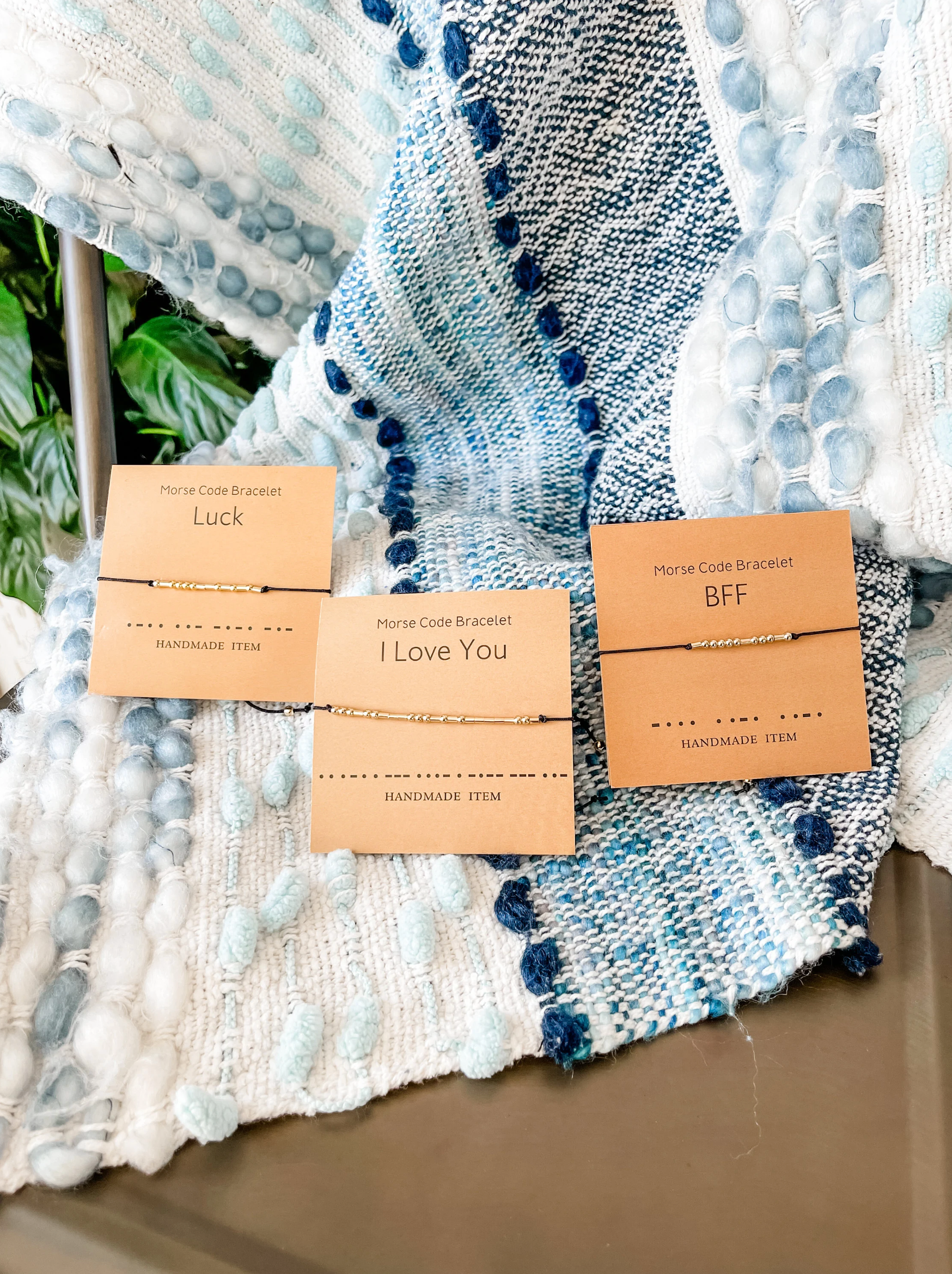 Add on to any care package: Morse Code Bracelet, Adjustable, Gold Beading