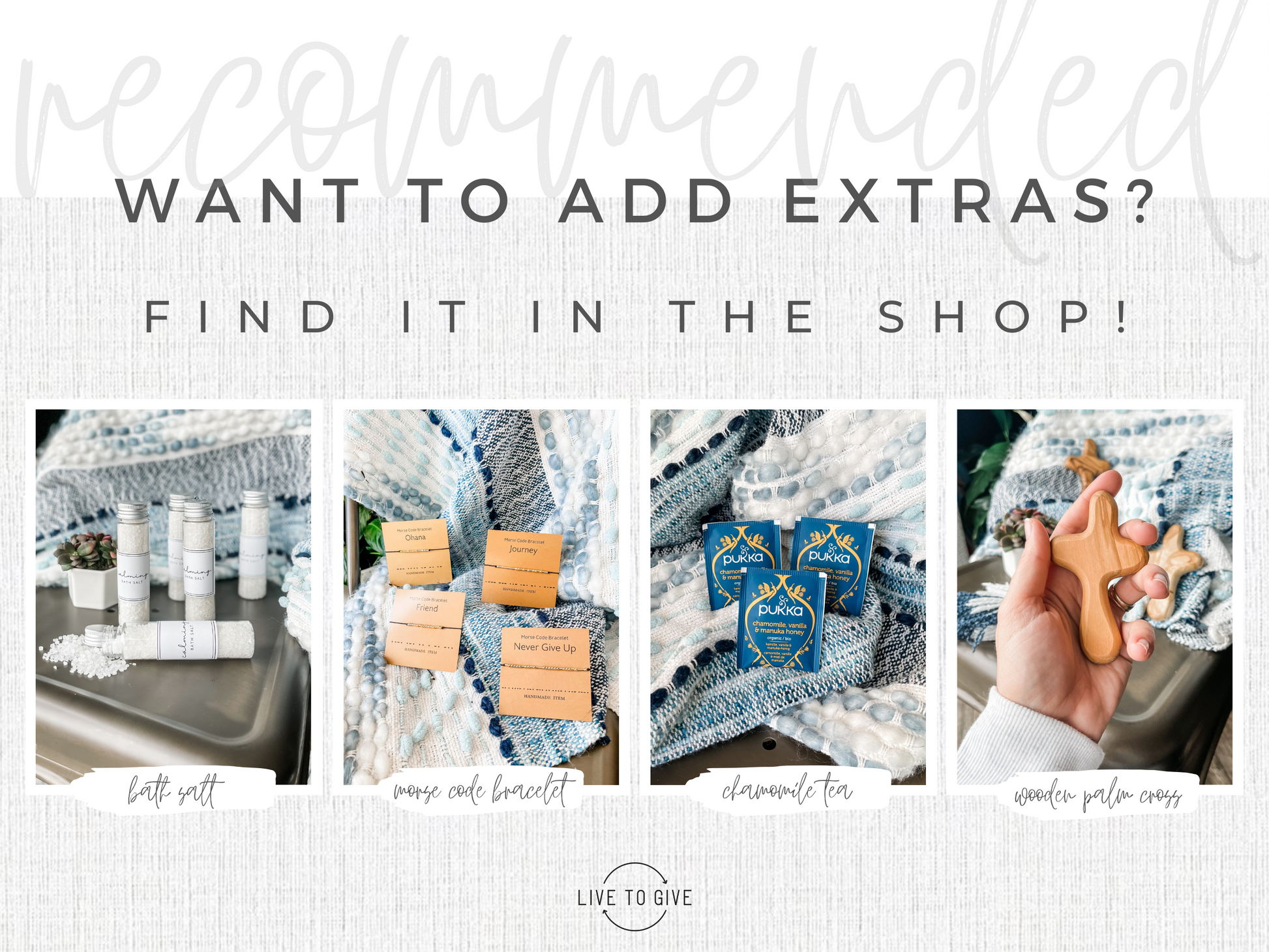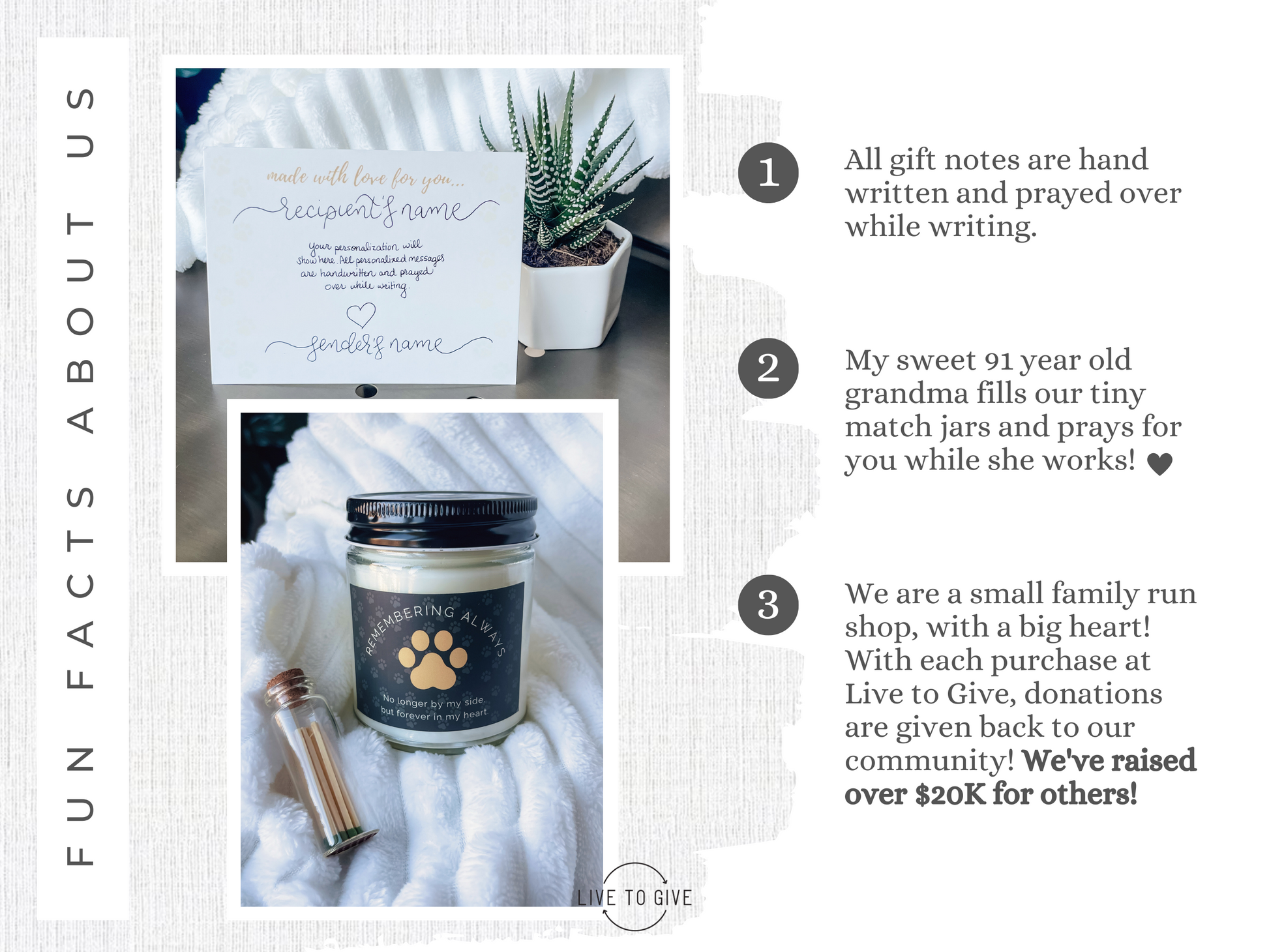 Include a personal message at no extra cost in the personalization section, all messages are handwritten on a matching notecard and prayed over while writing.