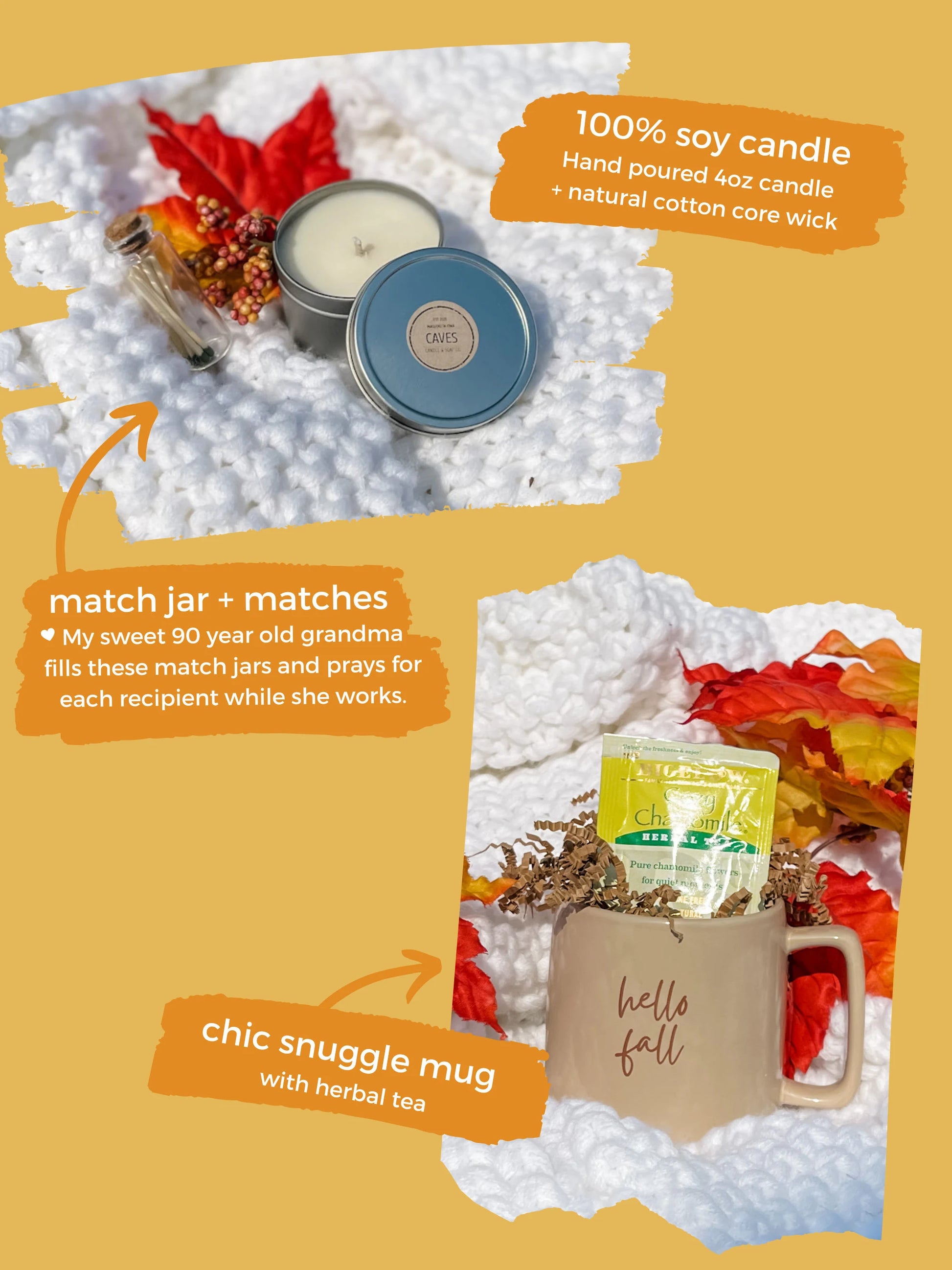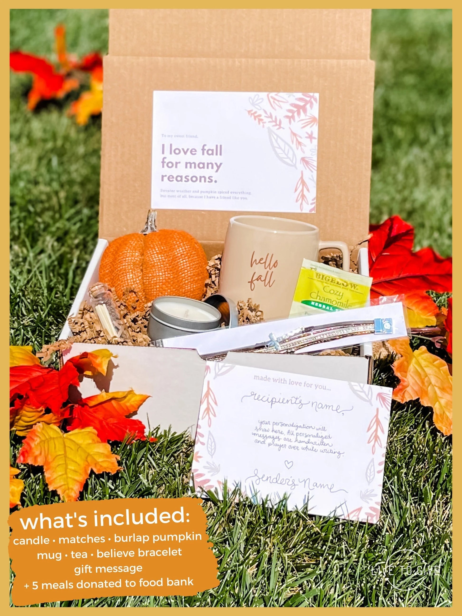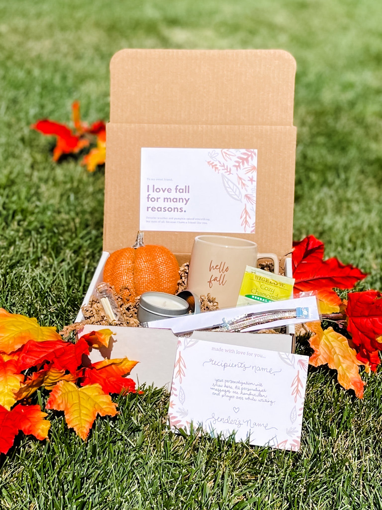 Surprise a sweet friend this fall with our Cozy Fall Care Package. Include a personal message at no extra cost.