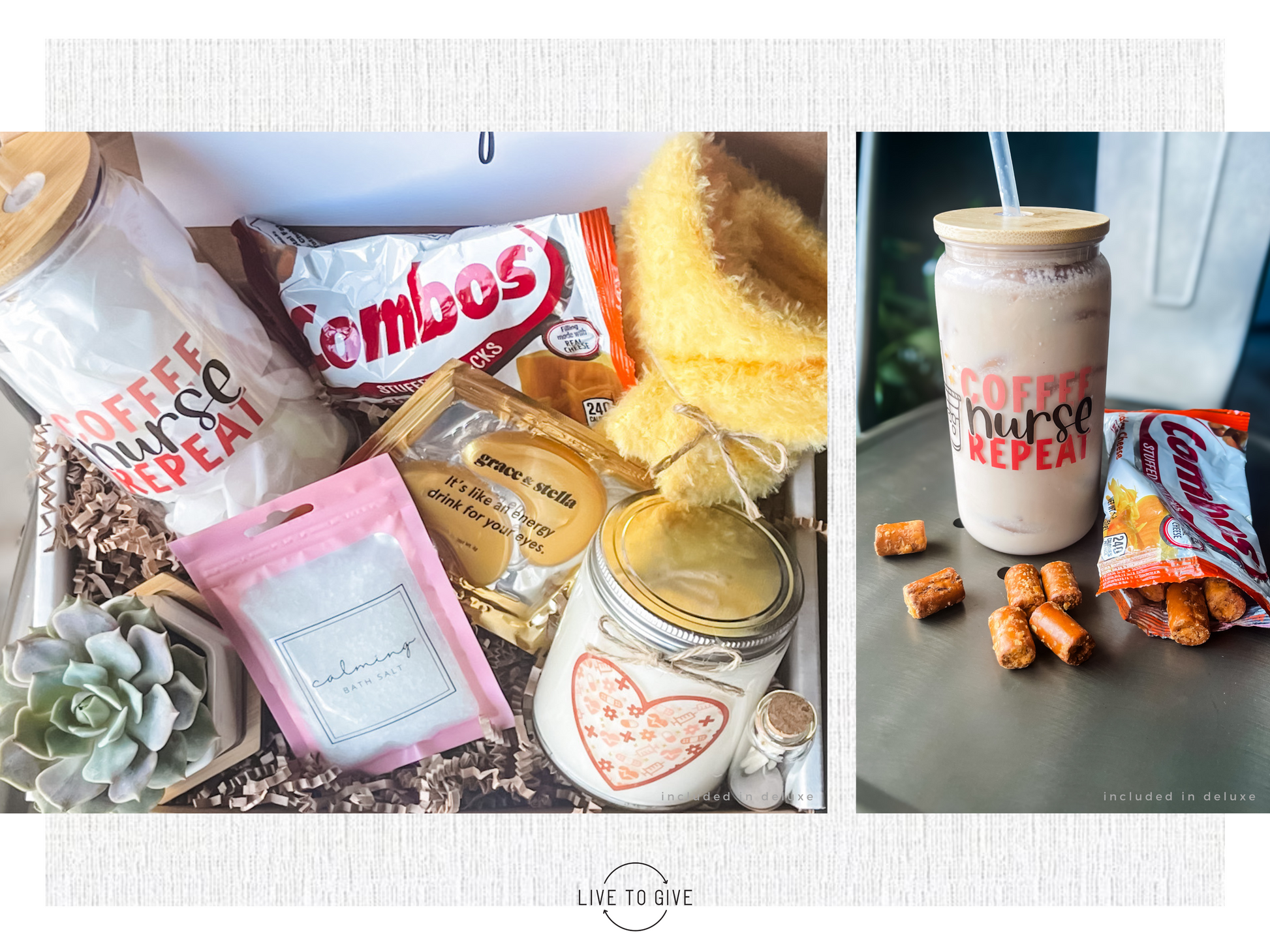 • Deluxe Includes: candle, matches, potted succulent, tumbler, socks, selfcare goodies, and One Tree Planted donation.