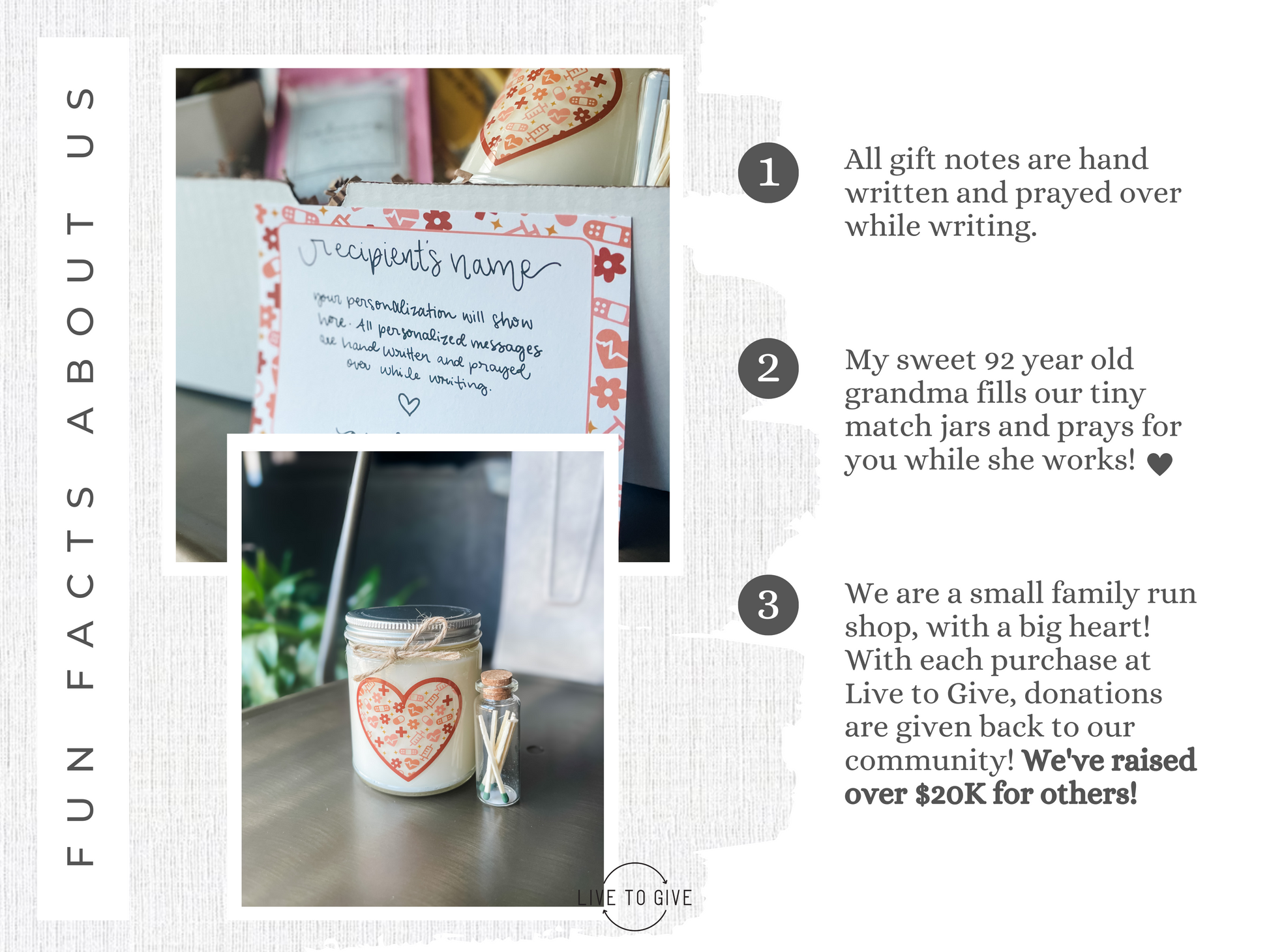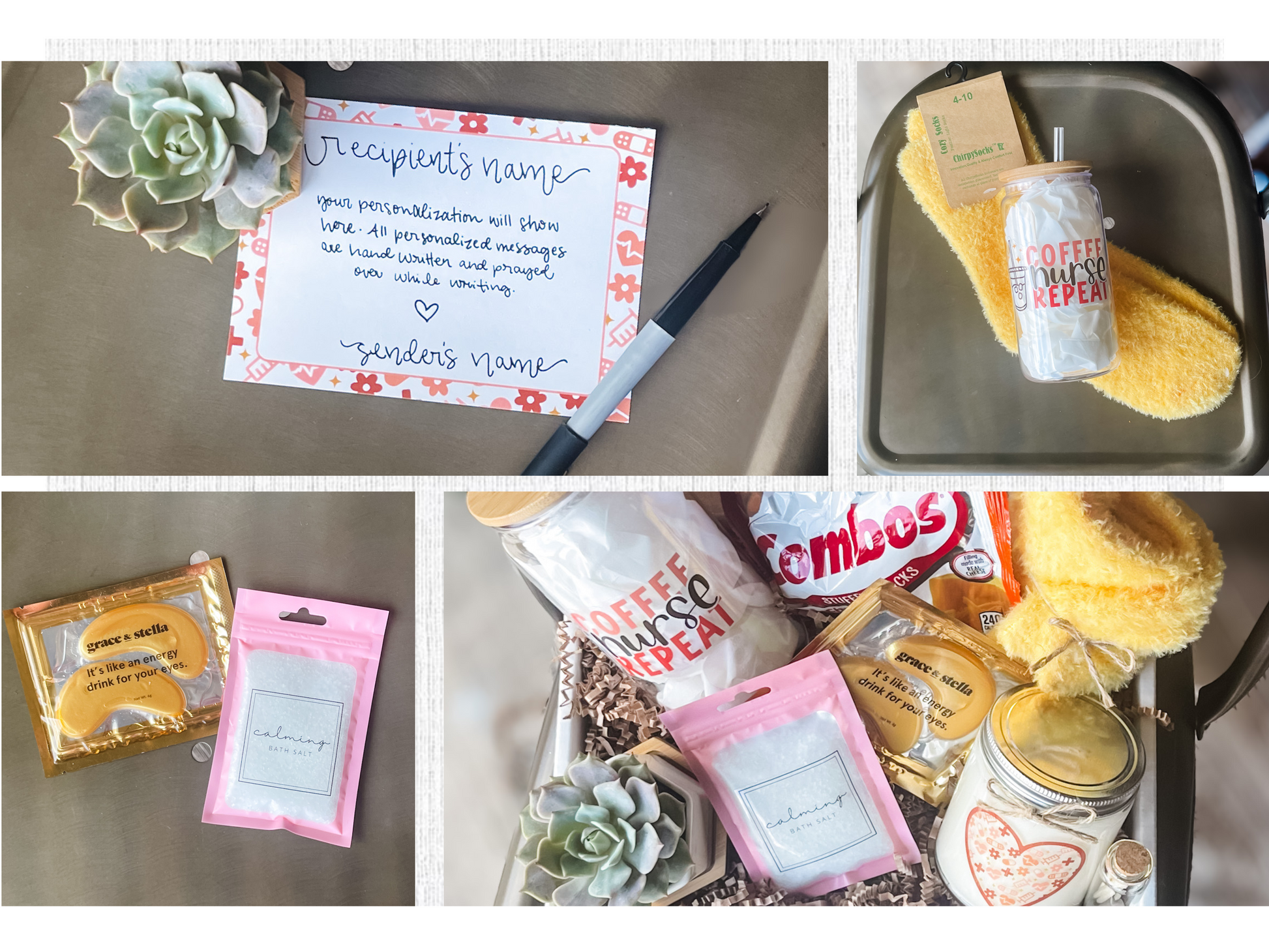 Include a personal message at no extra cost in the personalization section, all messages are handwritten on a matching notecard and prayed over while writing.