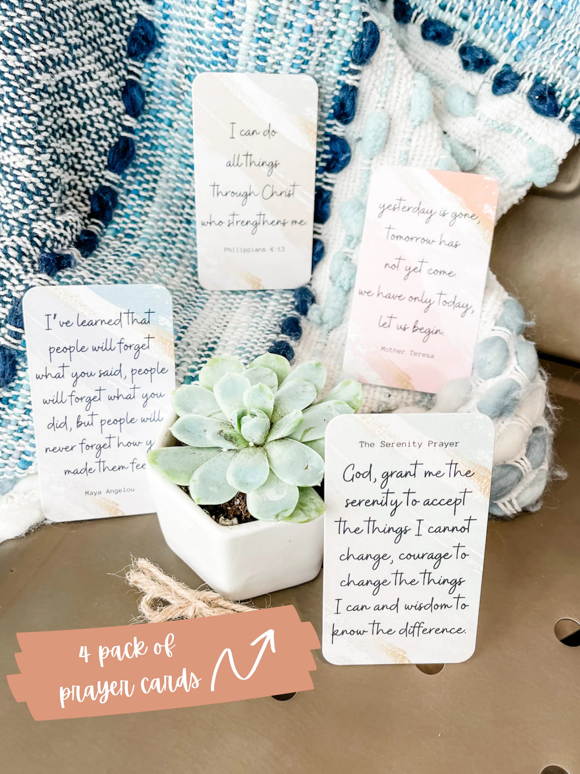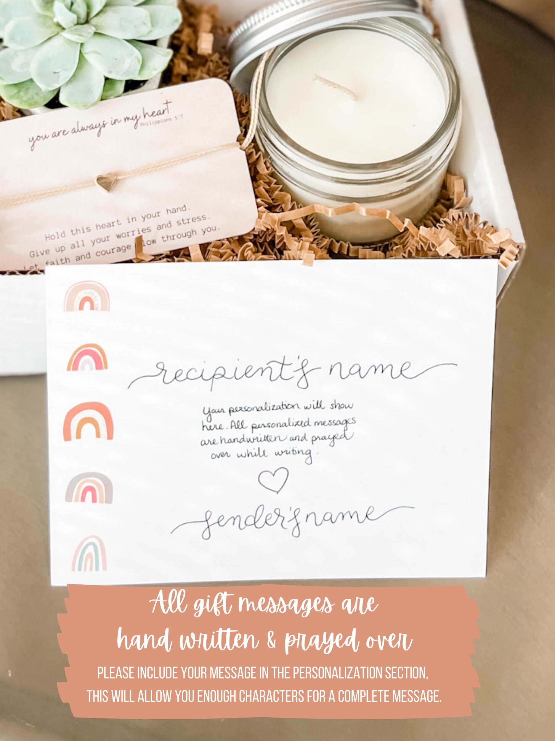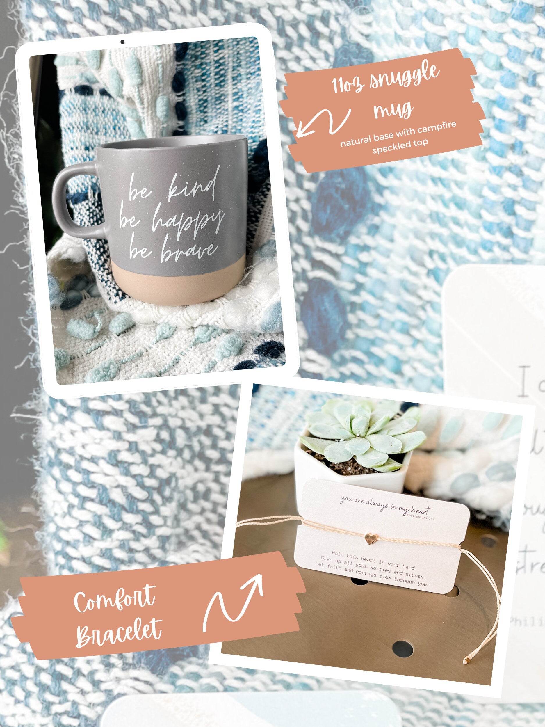 Succulent, Candle, Cell Phone Ring Holder/Stand, Prayer Card Pack (set of 4), and Comfort Bracelet
