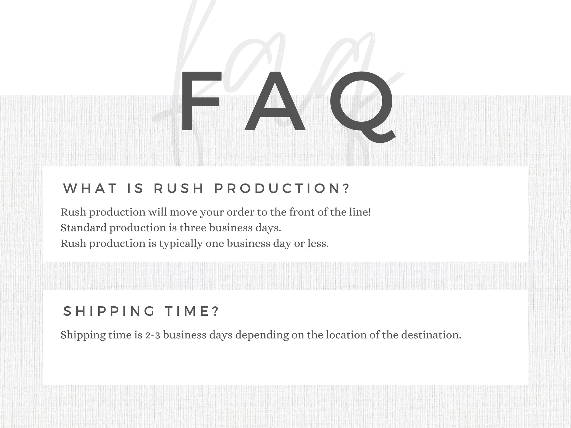 Rush production is typically one business day or less.